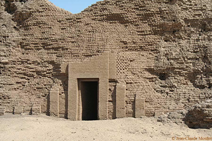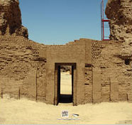 Shunet-el-Zebib : le mur comprenant la porte d'entrée a été consolidé. La petite image est tirée d'un journal et montre l'état avant les travaux. [Retour]