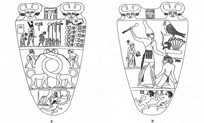 le dernier roi de la dynastie 0 ou le premier de la 1ère dynastie. Khentamentiou, dieu d'Abydos, est le seul dieu chien qui soit mentionné dès le règne de Narmer ( vers 3150 avant notre ère). Son nom signifie "celui qui est à l'avant des Occidentaux", et évoque le lieu où étaient construites les grandes nécropoles. Il désigne le roi mort et déifié. Il apparaît sur la face a de la palette dite de Narmer, précédant le placenta royal : le passage à l'au-delà est ainsi suivi d'une