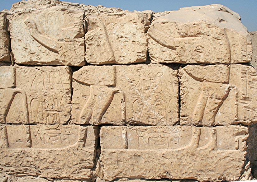 Petit temple de Ramsès II : reste de sculptures avec le cartouche de Ramsès II.