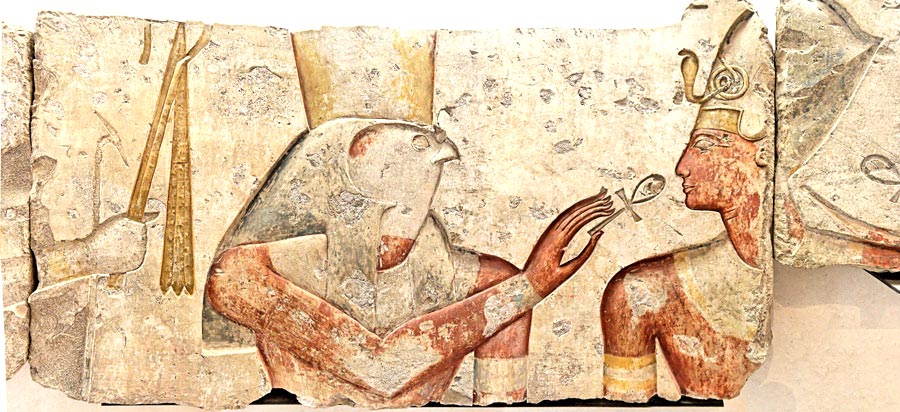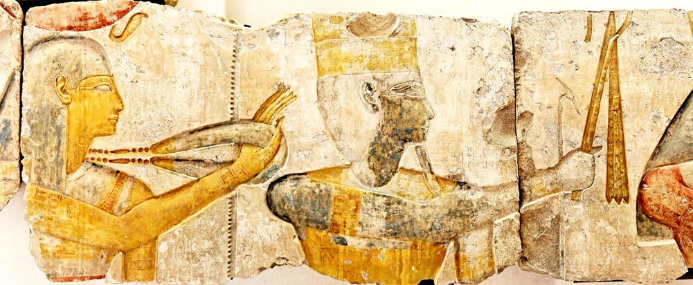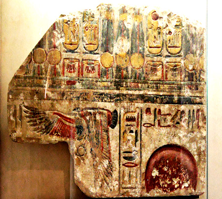 L'ensemble est reconstitué avec plusieurs photos.Vous pouvez voir les panneaux du dessous en détail en cliquant ici. La facture est assez belle et fait penser aux décors des chapelles nord du portique du grand temple de Ramsès