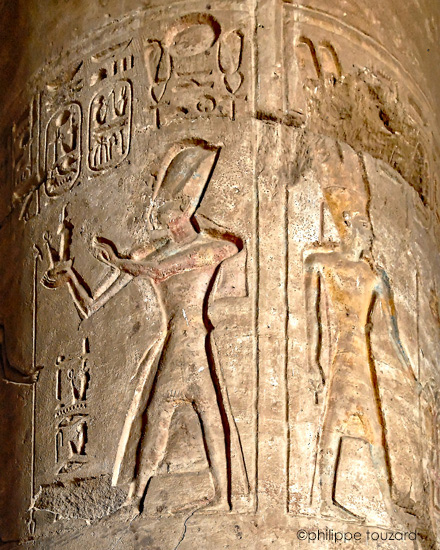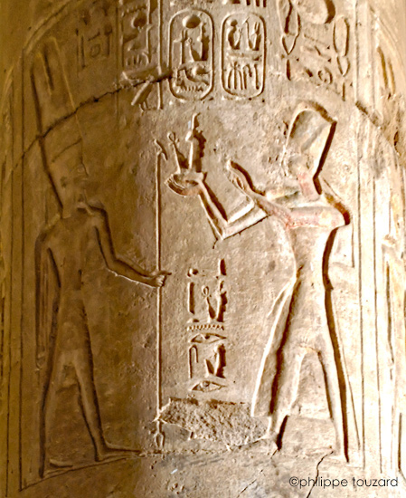 Ramsès II fumigène de l'encens devant Amon pour purifier