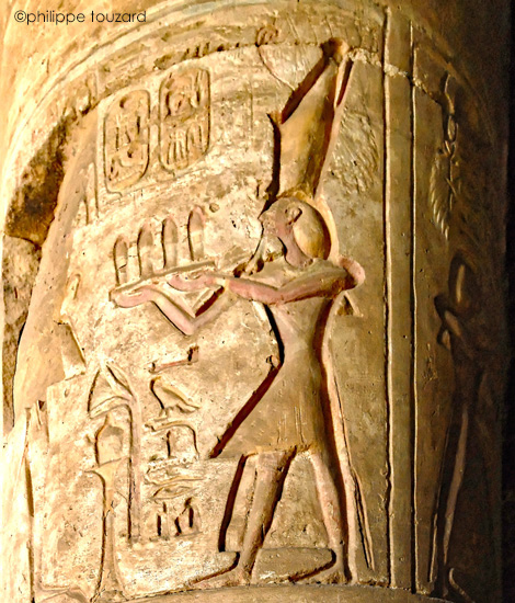 Sur une autre colonne, une scène d'offrande du vin.