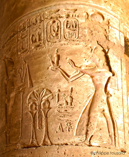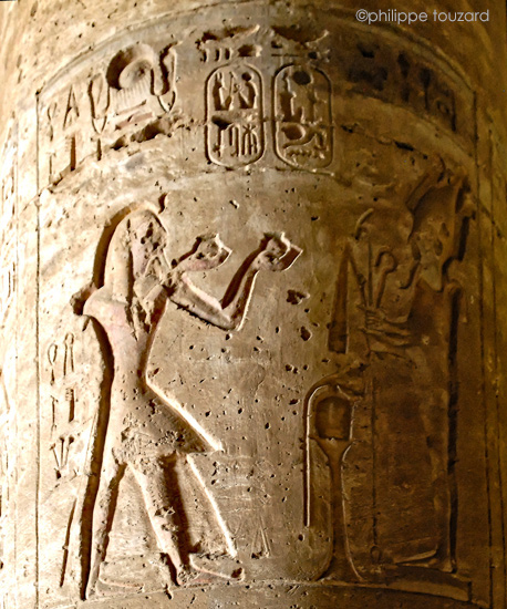 Ramsès II offre 2 vases de vin à Osiris (à droite)