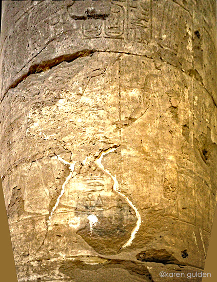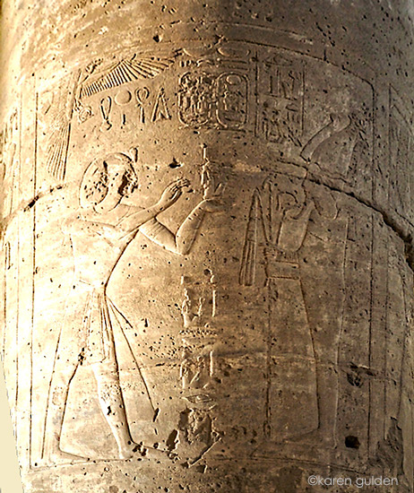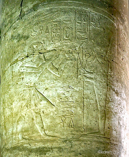 La travée d'Osiris comporte deux rangées de colonnes, numérotées 24 et 5. . La numérotation utilisée reprend celle du site AbydosSethy.net.