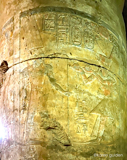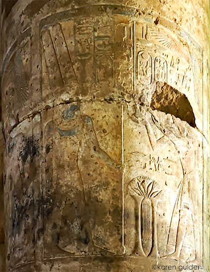 La travée d'Amon comporte deux rangées de colonnes, numérotées 6 et 7. La numérotation utilisée reprend celle du site AbydosSethy.net.