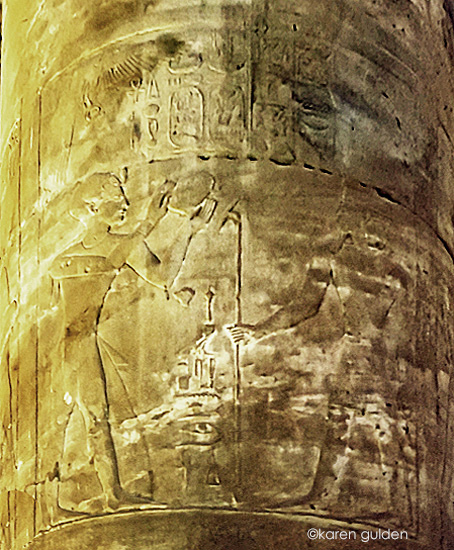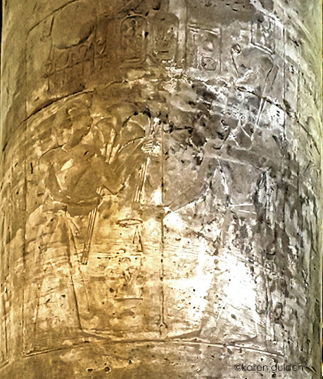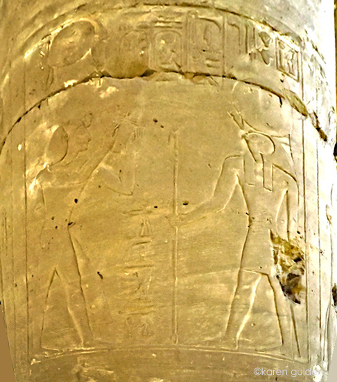 La travée de Rê comporte deux rangées de colonnes, numérotées 8 et 9 La numérotation utilisée reprend celle du site AbydosSethy.net.