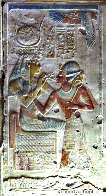 Scène du côté Sud :le roi présente la Maât à Rê-Horakhty. Le dieu lui donne toute santé.