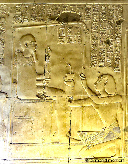 Le roi entre dans la Grande Place du per-our du dieu Ptah, le maître de la vérité. Le dieu donne au roi toute nourriture?