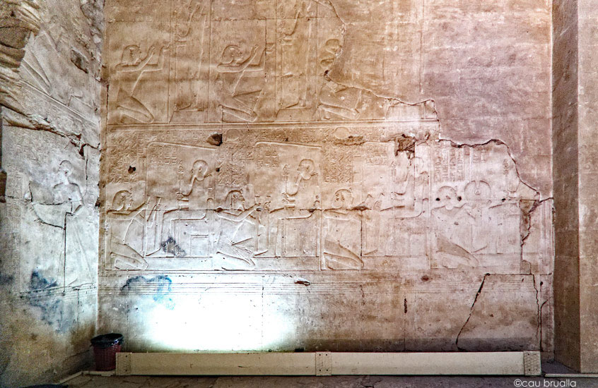 En principe, dans ce panneau chaque scène d'un vêtement du bas est accompagnée d'une scène du registre du haut qui est dans cette chapelle très endommagé. Les scènes restantes se suivent dans l'ordre du rituel.