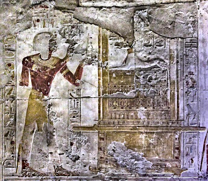 Le roi offre des fleurs au dieu Teheret, maître de l'Occident. qui lui donne pour toujours les Deux-Terres. (vue mise pour mémoire).