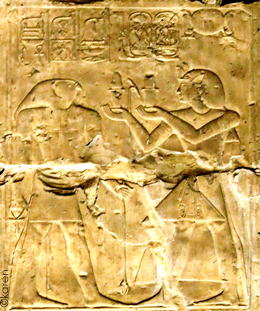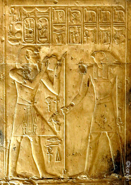Sethy fait l'offrande du vin à Sokar qui lui donne toute vie, stabilité et pouvoir, ainsi que toute santé