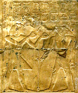 Sethy offre le vase Nemset au dieu Sokar qui réside dans le château de MenMaâtRê. Le dieu lui donne toute vie, ; toute santé et toute joie.