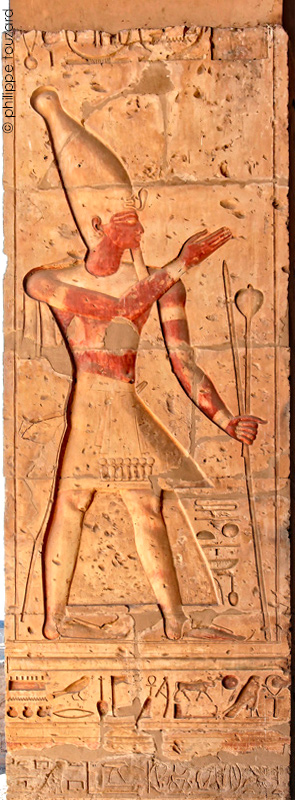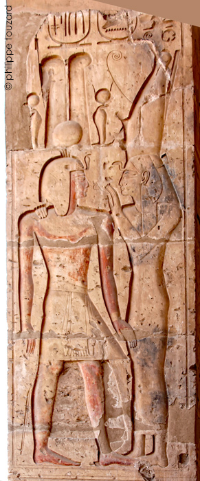 Début de la phrase : "Que vive l'Horus, Taureau puissant, l'aimé de la Maât, le dieu parfait,...."