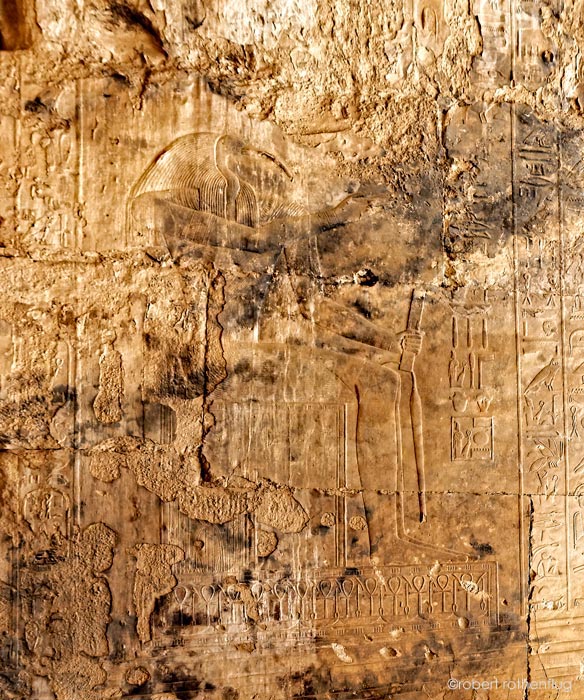 Thot, le maître de la parole divine, qui réside dans le château de MenMaâtRê se tient à côté de son discours dont la dernière colonne est devant sa main. Ce texte contient 43 colonnes. La présentation complète peut en être trouvée dans le site AbydosSthy.net.