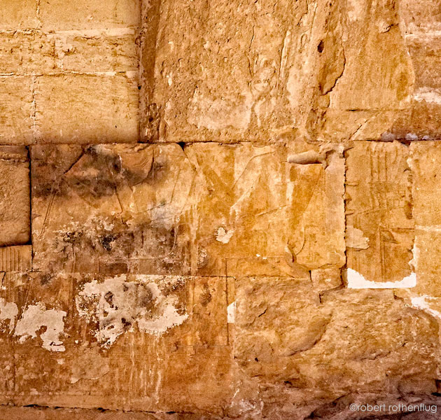 La scène est incomplète. Son étude montre qu'elle représente une scène d'offrandes d'un roi (sans douteRamsès II). Devant le roi se tiennent assis Sethy divinisé, Isis et l'Ennéade. Isis donne au roie ...toute joie.
