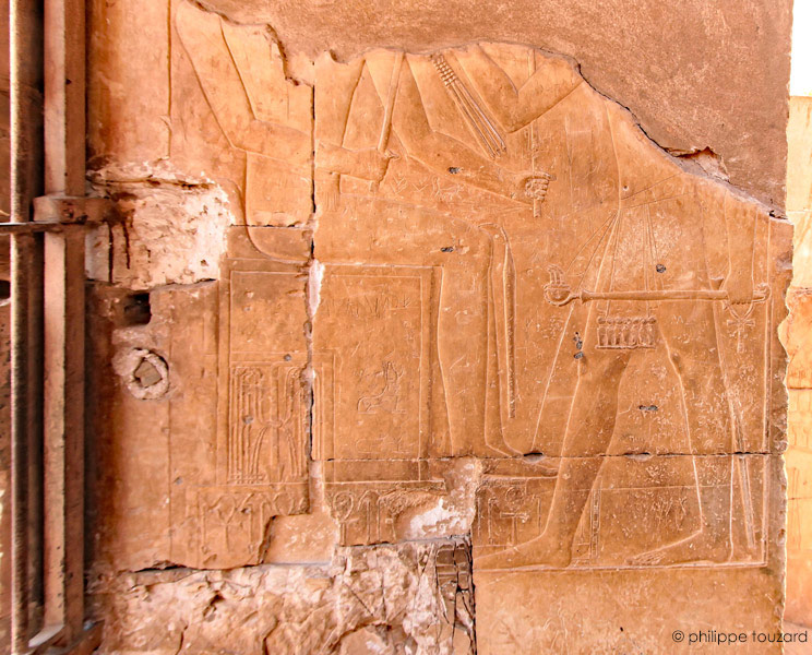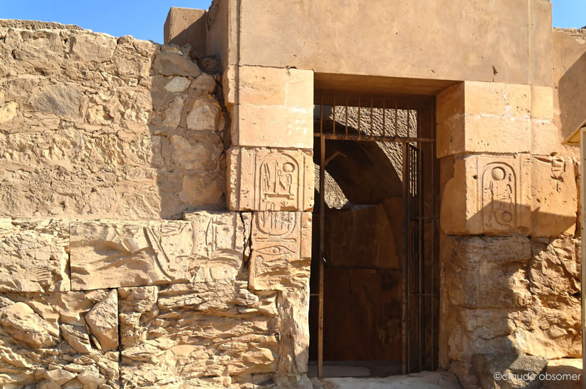 Sethy indique la sortie sur ce montant de droite de la porte.