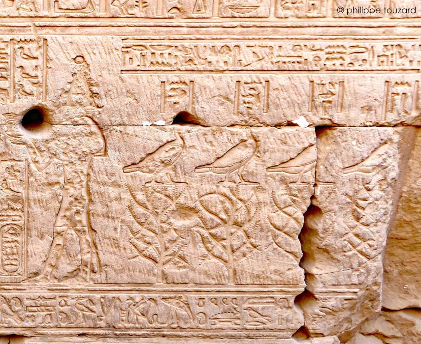 Les 4 oiseaux posés sur un sycomore sont liés directement du chapitre 168 du Livre des Morts par leurs invocations. Leurs noms font partie de l'ensemble des dieux protecteurs. Elles tranchent la tête de tous les ennemis d'Osiris.