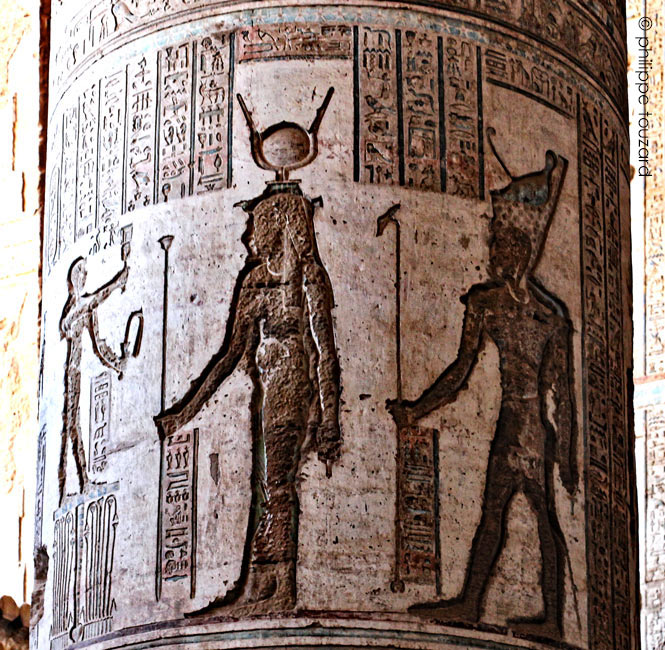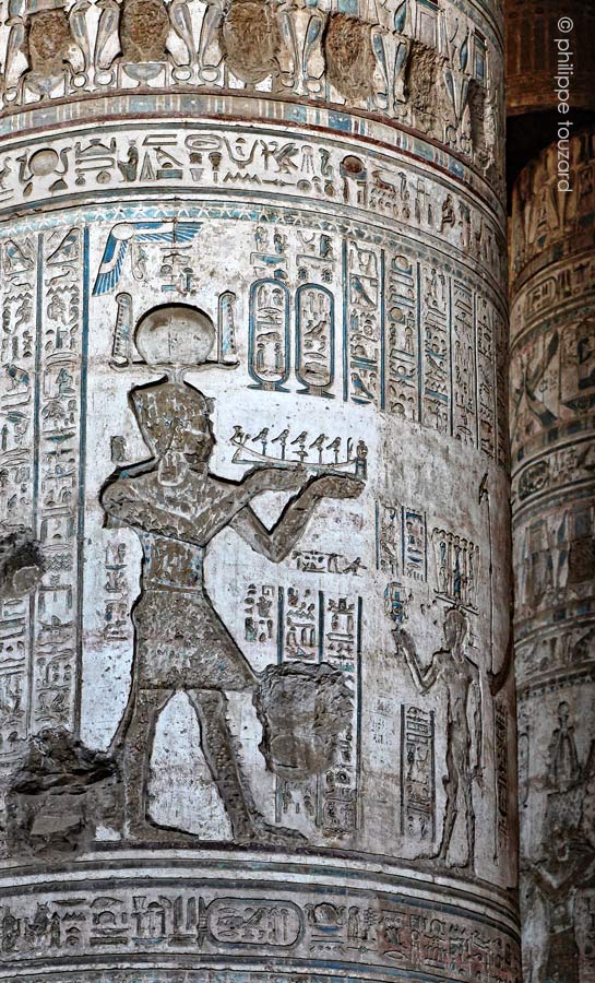 le roi joue du sistre pour Hathor. Un dieu-enfant