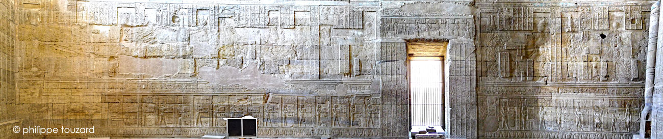 -les dieux du passé sont évoqués dans les travées Est III et Ouest v. Avec les dieux d'Edfou et de Dendera, ils participent aux fêtes du Nouvel An.