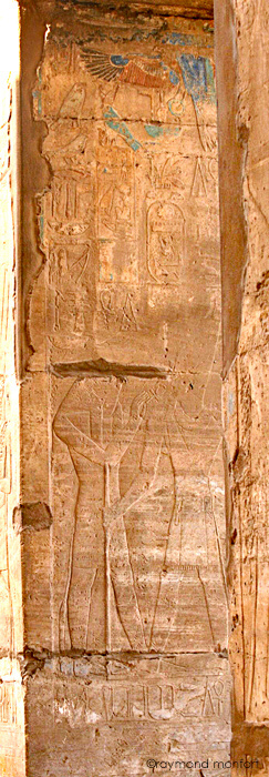 Les deux piliers suivant montrent sur leurs faces Est le rituel de donner de l'eau fraîche : le roi y est agenpuillé devant le dieu.