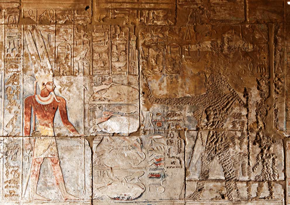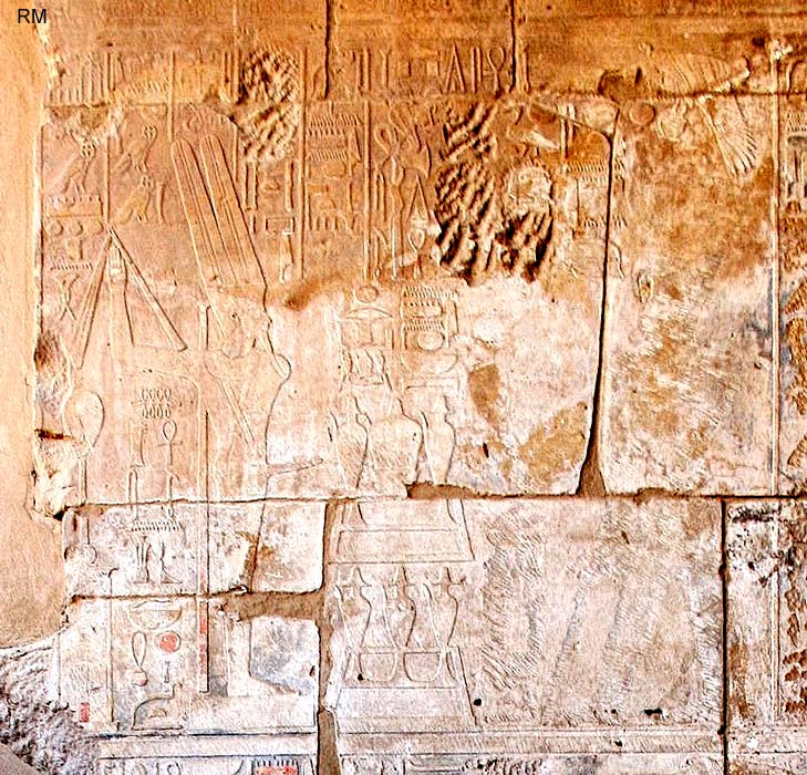 La reine offre 4 pièces de choix pour Amon-Rê., des veaux, des cuisses de boeufs,des oiseaux et des volailles. |