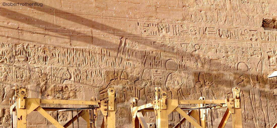 Ici sur 2 registres, une partie du transport de barques divines par les prêtres.