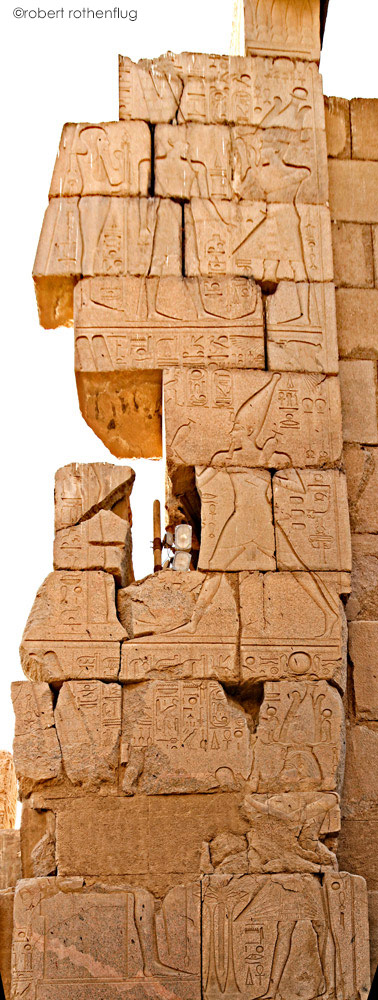 Horemheb court dans une course rituelle avec 2 vases devant Amon-Rê Kamoutef (dont la partie est détruite).