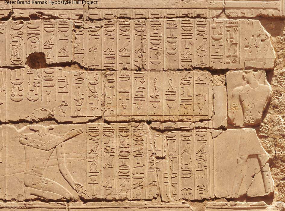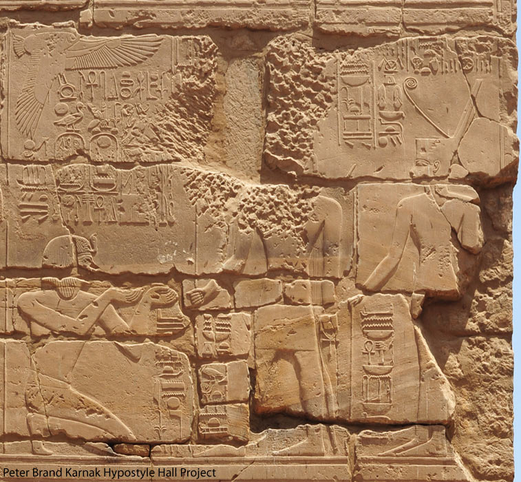 Scène 207 : Sethy 1er est agenouillé devant Amon-Rê et prononce une litanie qui est une liste d'offrandes. Le roi invoque Amon et l'Oeil d'Horus avant d'annoncer les offrandes : vin, eau, 4 sortes de pain, des gâteaux, miel, oignons, etc...