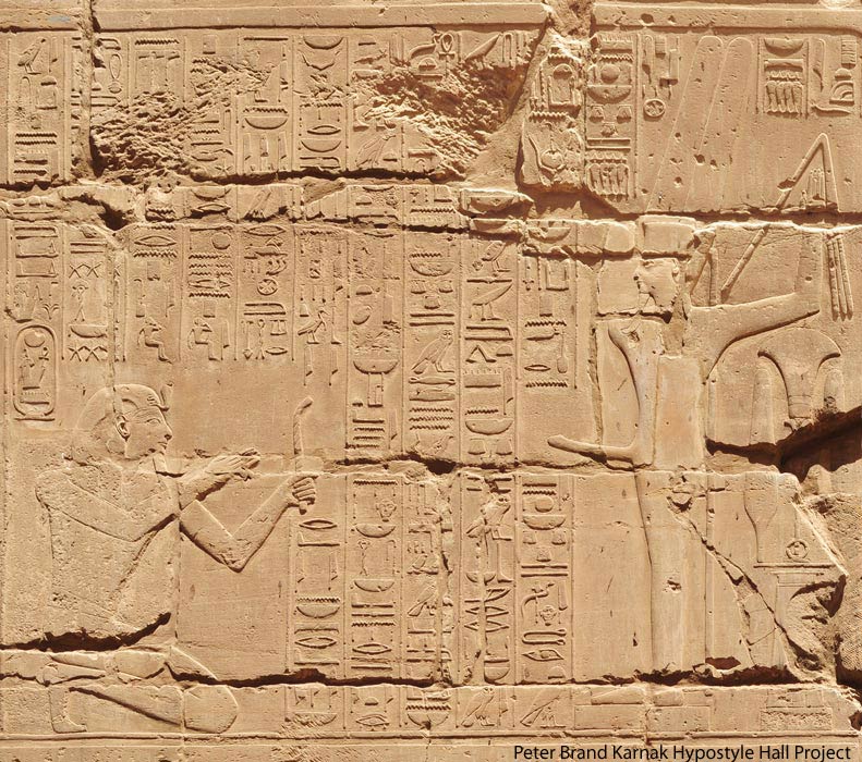 Scène 211 : Sethy 1er agenouillé présente une torche (allumée?) à Amon-Rê. Entre eux, un long texte rituel commence par un souhait sur la durée de la torche et continue en invoquant les dieux de l'Ennéade. Amon lui donne toute vie, pouvoir et bravoure et toute victoire comme Rê.