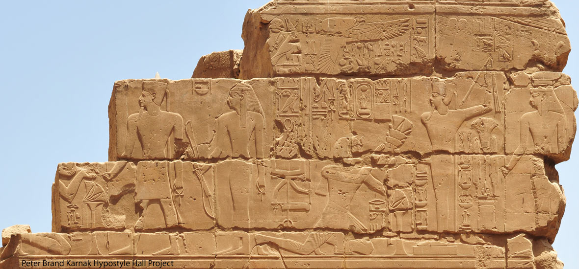 Scène 215 (droite) : Sethy 1er agenouillé offre un bouquet de fleurs à Amon-Rê Kamoutef représenté ithyphallique et suivi d'Isis. Derrière le roi, le Ka royal porte le nom d(Horus du roi. Amon lui donne toute vie, stabilité, pouvoir et toute santé. Derrière Amon, la formule de protection inscrite dans de nombreuses scènes. Nekhbet vole au-dessus de la scène.