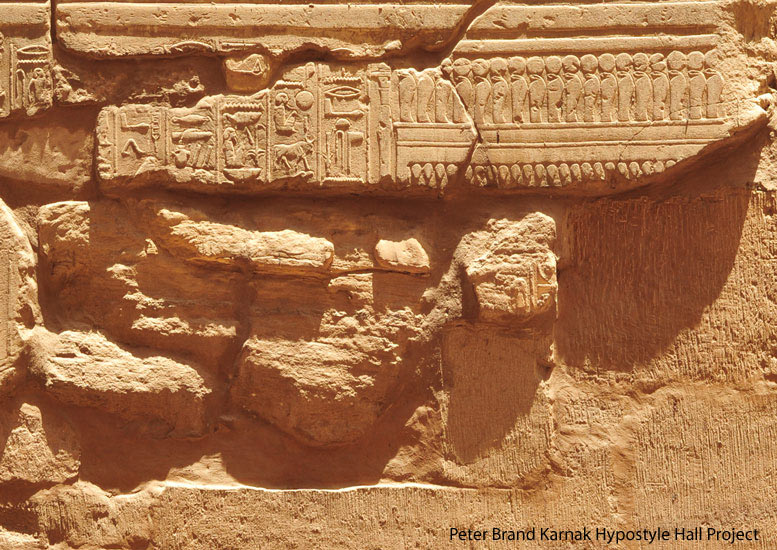 Scène 231 : Seul le haut des 2 scènes subsiste. A gauche, une scène d'offrande avec Horus et une autre divinité. A droite, Sethy 1er est agenouillé