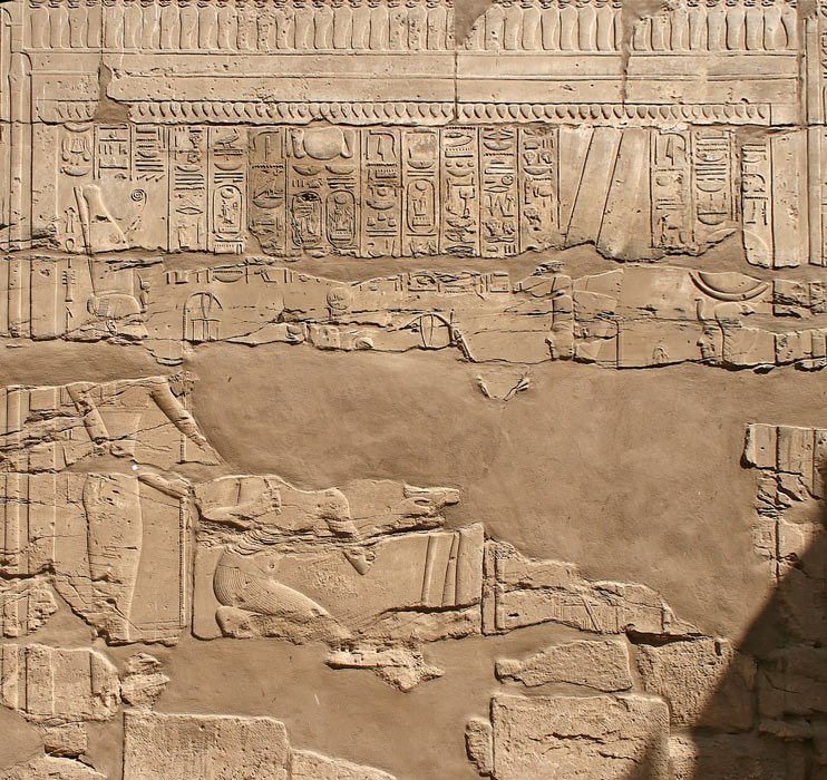 de gauche à droite, Geb et Nout; puis Osiris et Isis;