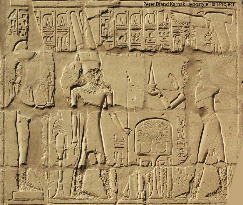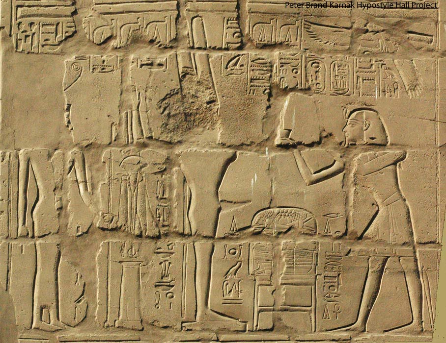 Scène 2 : le roi encense Amon-Rê Kamoutef toujours représenté ithyphallique. Amon est suivi par Amonet. Amon donne au roi notamment toutes les victoires. Amonet lui donne notamment l'éternité.