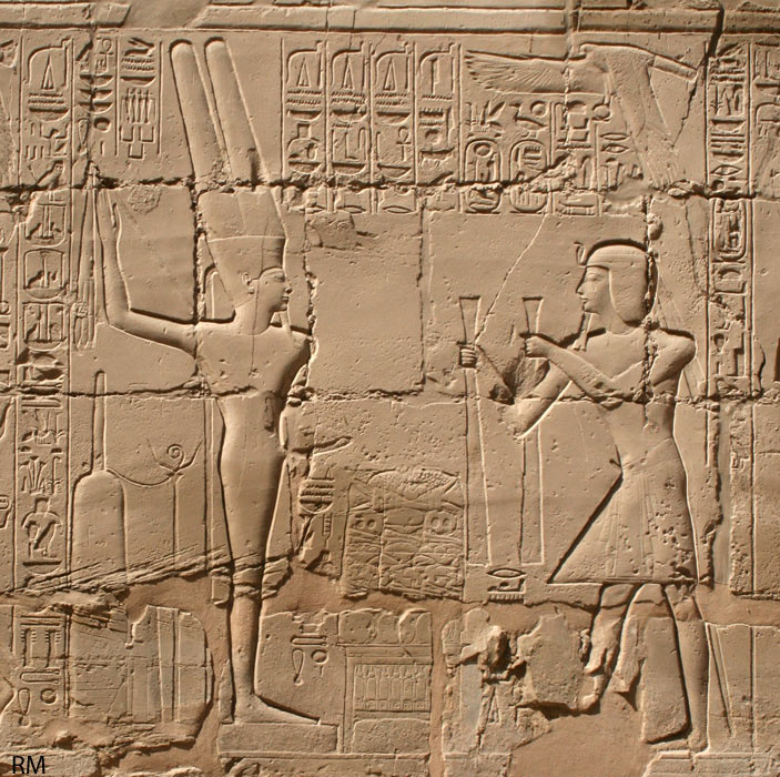 Scène 36 : le roi est agenouillé. En compagnie des 15 membres de l'Ennéade, il adore la Triade Thébaine, Amon, Mout et Khonsou. L'Ennéade dans son ensemble et chacun des ses membres adressent des demandes à Amon-Rê pour qu'il comble le roi de ses bienfaits. Les dieux de l'Ennéade : en haut, Montou, Atoum, Shou, Tefnout, Geb; au milieu, Nout, Osiris, Isis, l'Ombite (Seth), Nephtys : en bas, Horus, Hathor, Sobek, Tatenen et Iounyt. Le dieu Amon donne au roi le flot du Nil. Khonsou de Thèbes Neferhotep à Karnak lui donne toute vie, stabilité, puissance santé et joie.