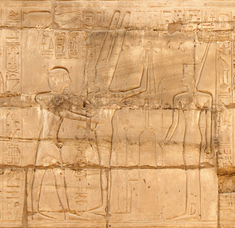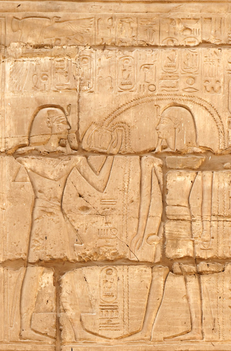 corde enroulée est sans doute une image du sanctuaire primitif de Min dont Amon prend ici les attributs. Amon est suivi d'Amonet. Le dieu lui donne victoire et puissance. La déesse lui promet des millions d'années et tous les pays sous ses sandales.