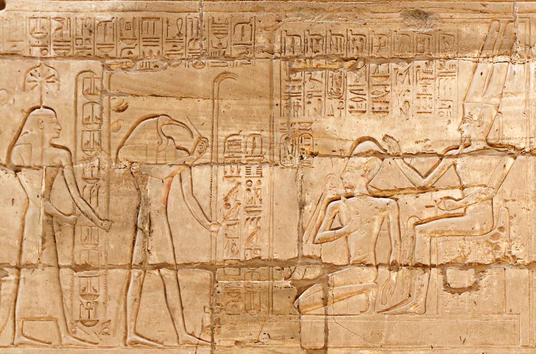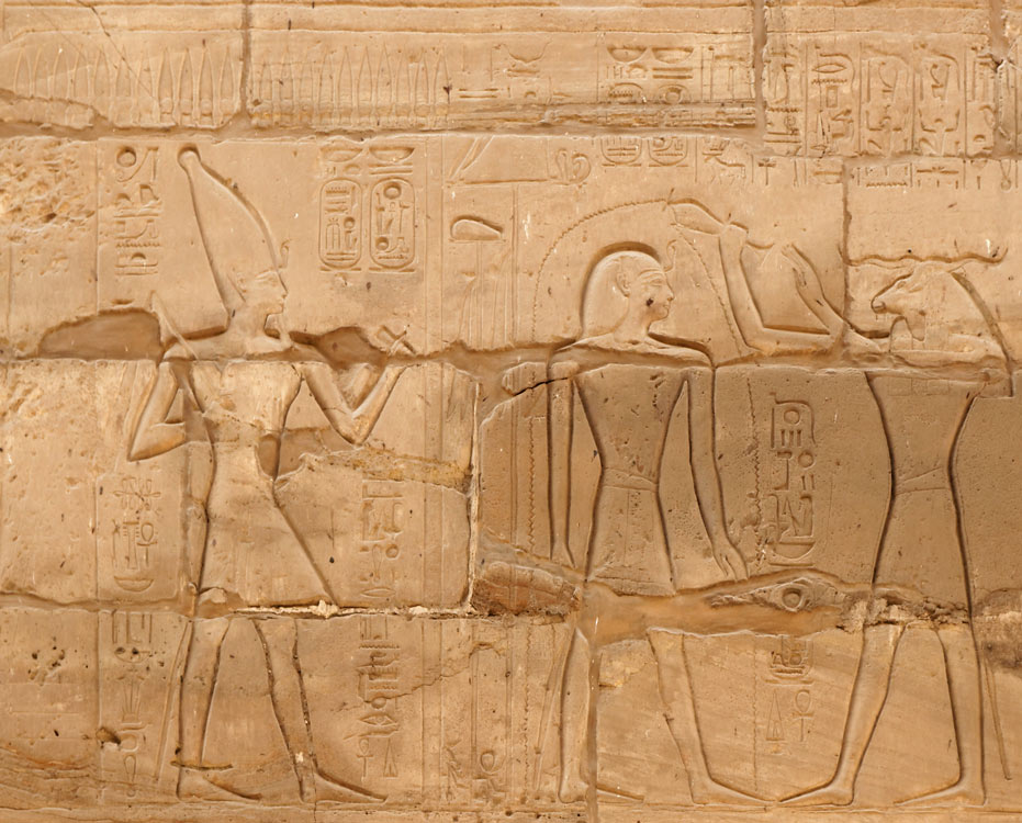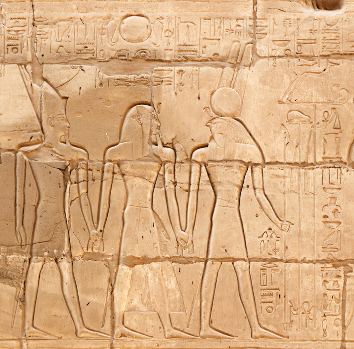 Scorpion II . On retrouve d'ailleurs une scène semblable dans ce qui était le temple construit par Sésostris Ier à Karnak (Luc Gabolde, dans Le grand Chateau d'Amon, scène reproduite dans l'ouvrage de N. Favry sur Sésostris Ier). Le texte associé est : aller et venir, montée du roi..