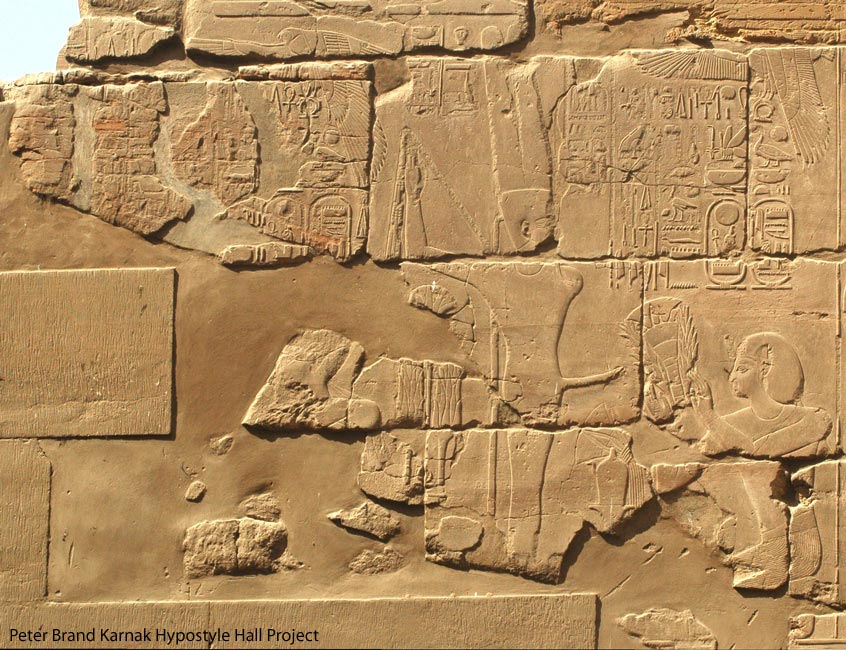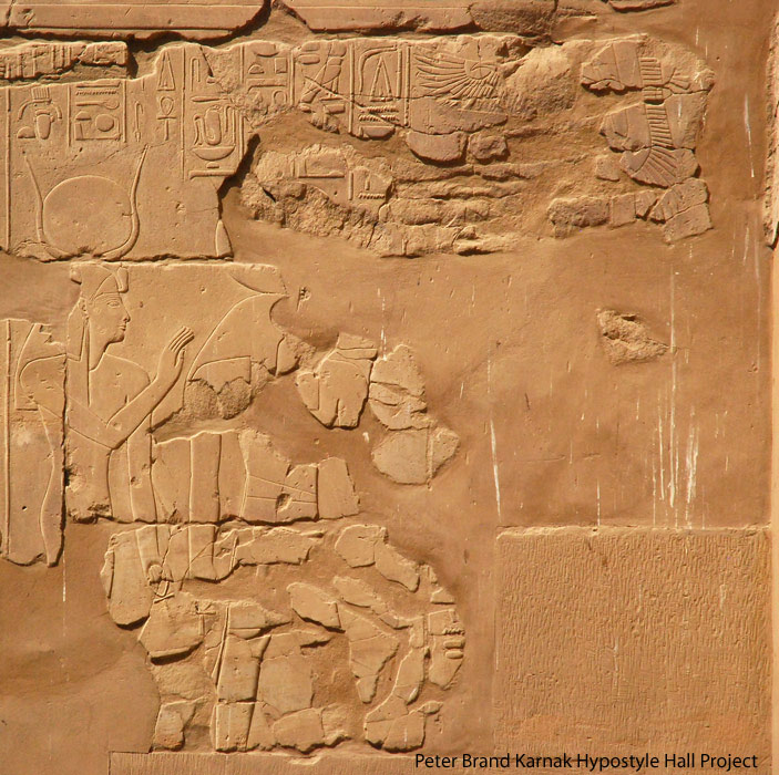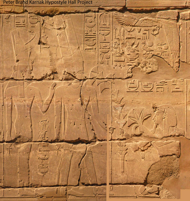 A droite, Sethy est devant Amon-Rê et Khonsou dans Thebes Neferhotep. (scènes fragmentaires).