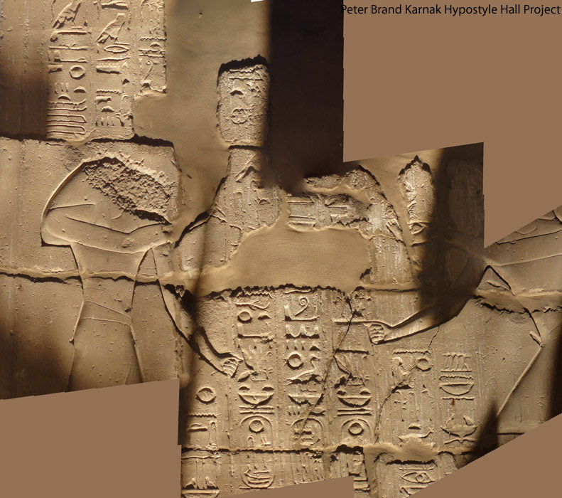 Scène 119 : le roi reçoit des jubilés et des années du dieu Thot qui lui donne les années d'Atoum (essai de reconstitution de la scène avec plusieurs photos partielles).