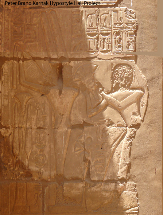 Scène 125 : Ramsès II (à l'origine, Sethy 1er) offre un bouquet à Amon-Rê Kamoutef ithyphallique. Derrière le dieu, la formule de protection habituelle. Amon donne au roi toute vie, stabilité, pouvoir et santé;