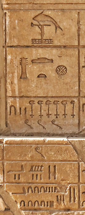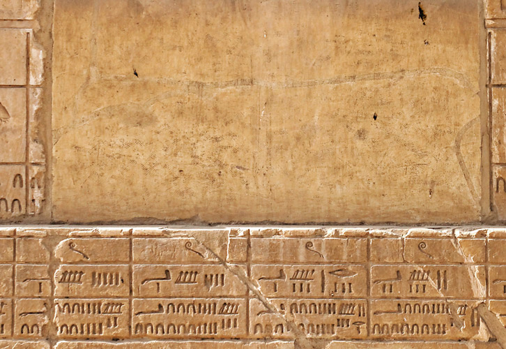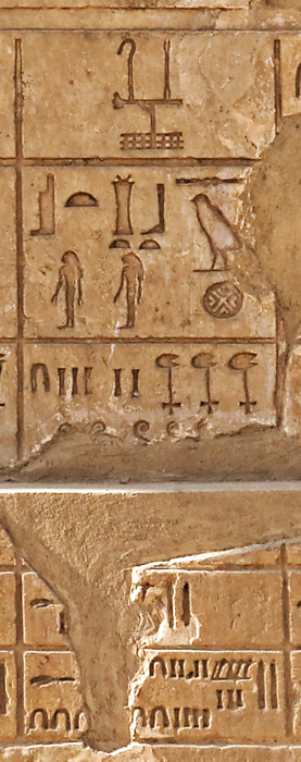 En dessous 2 déesses, Isis et Bastet pour laquelle on devine une tête de lionne.