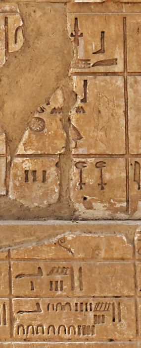 Il manque 4 nomes, leurs blocs n'ayant pas été retrouvés . La suite reprend avec l'ordre suivant : 16ème nome, 13ème et 14ème. En comparant cette liste avec celle de la Chapelle Rouge d'Hatchepsout (XVIIIème dynastie), Lacau et Chevrier (p. 235) en déduisent que les nomes 10,11,12 et 15 manquent ici (voir dans la description de la Chapelle Rouge du présent site, la partie sur l'assise du mur Nord qui montre les nomes de Basse Égypte)