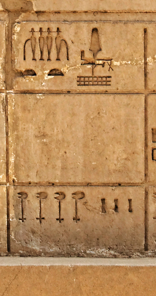 Le dieu serait un bélier comme Khnoum, dessiné par erreur à côté, décalant ainsi les inscriptions du 21ème nome au 22ème.