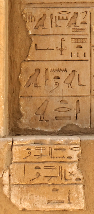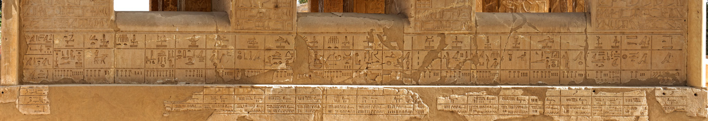 Cette colonne de textes se trouve à la fin des nomes de Haute Égypte gravés sur le soubassement Sud. Elle permet d'expliquer le contenu des inscriptions concernant chaque nome.