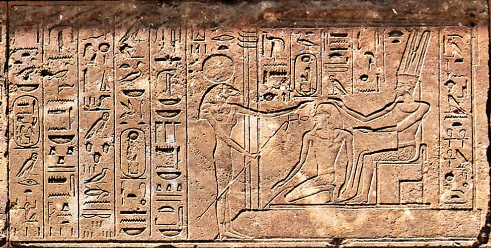 Scène 5 : Hatchepsout reçoit le némès des mains d'Amon en présence de Sekhmet.
