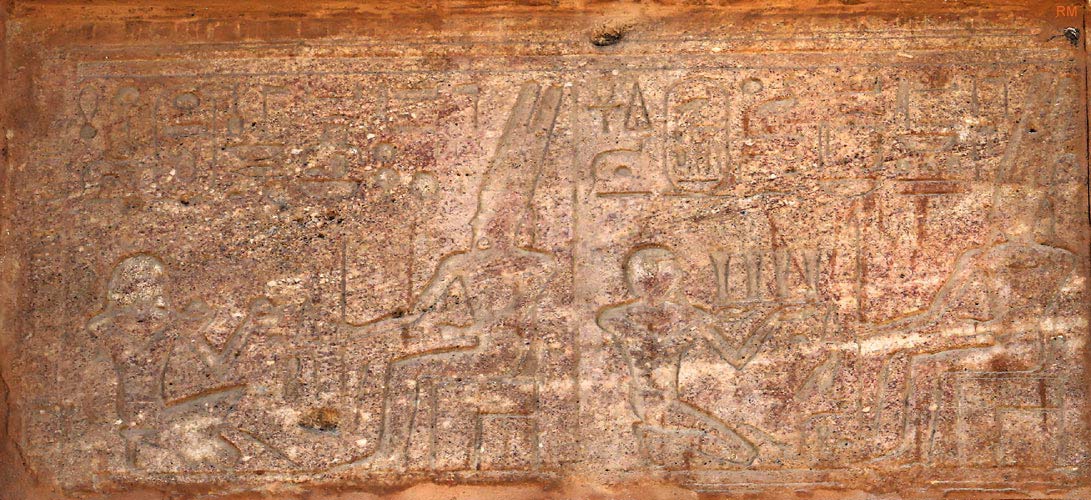 Sur la porte est, il ne reste qu'un parpaings où l'on devine les âmes de Pé et Nékhen