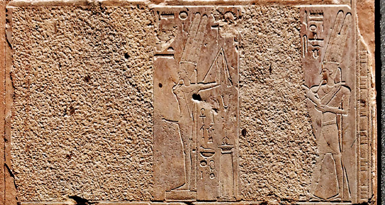 La déesse Ouret-hékaou (dont le nom est inscrit au-dessus de sa tête) assiste Amon.