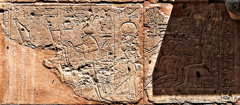 Assise 8 : Thoutmosis II est conduit par Montou et Atoum vers le temple où il sera couronné par Amon