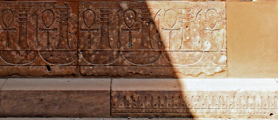 L'assise 0 est en débord de 22 cm sur le mur. Elle est décorée d'un frise de laitues. L'assise 1 est constituée d'une frise de voeux : "Toute vie, toute stabilité et toute force" dont la répétition multiplie l'efficacité.