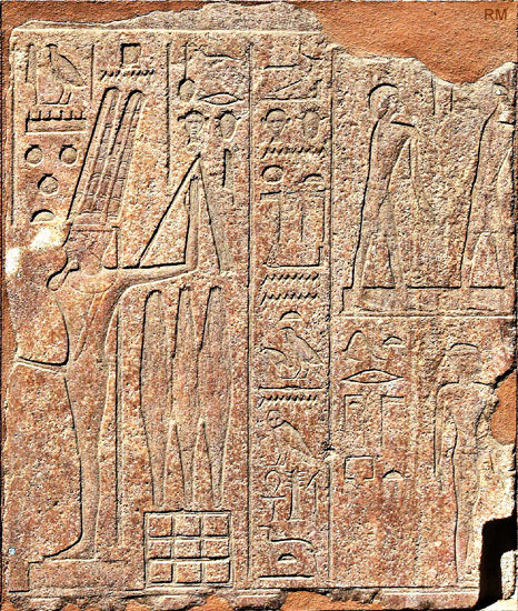 Scène 4 : une partie d'une scène d'offrandes à Amon-Min est conservée sur la moitié gauche du parpaing.