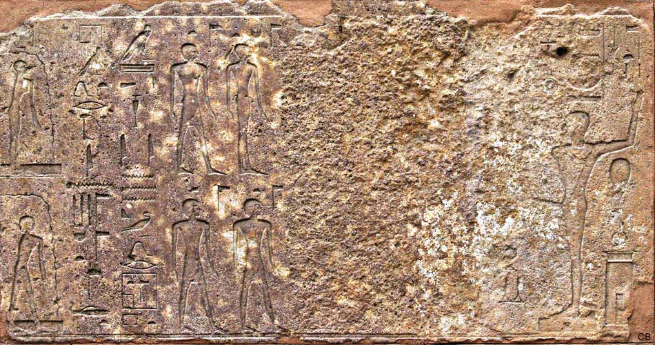 Scène 4 : un carreau manque , mais sur le bloc ci-dessus, à gauche, , la scène qui s'y trouvait, l'accueil de l' Ennéade se poursuit.